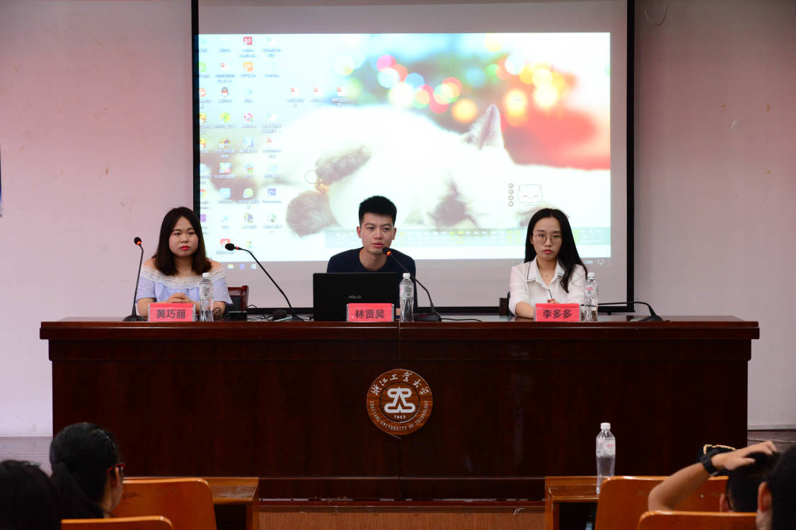 首先,由考取浙江大学法律硕士的黄巧丽同学为大家讲解。黄巧丽以流畅、清晰的思路,向大家说明了考研的目的与作用。她指出,在今后工作岗位的竞争中,一般大学本科毕业生的对手不只有各大名校的毕业生,还有研究生、博士生,甚至是已经有着丰富社会经验的往届生。因此,考研对于很多人来说是一个非常明智的选择。同时,黄巧丽还提出,在备考过程中,适当的娱乐休闲与学习相结合可以提高效率,而在考研这一年中,学姐自身也是获益颇多。
