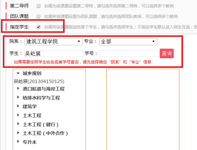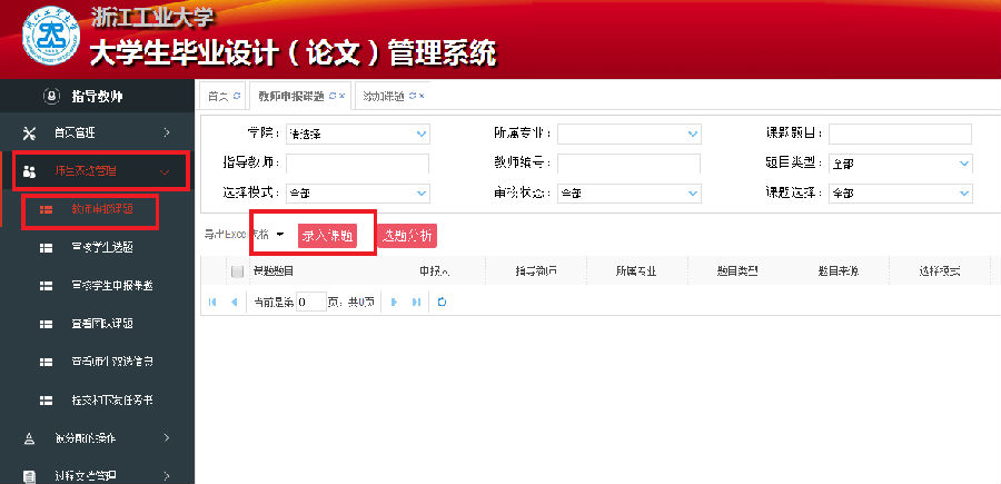 输入课题题目→选择院系和专业→题目类型→题目来源