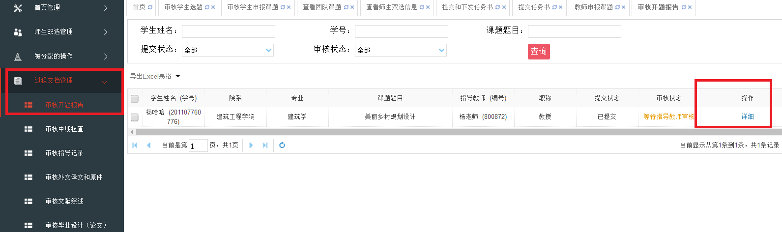 点击课题右侧详情,可查看课题情况及完成课题审核