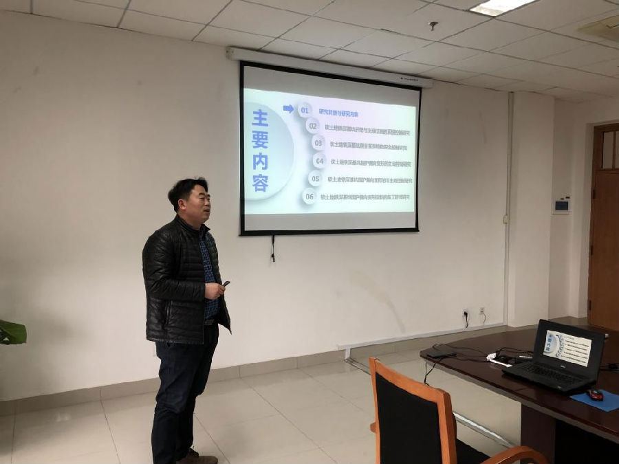 讲座伊始,王哲教授对孙总的到来表示热烈的欢迎,并简单的介绍了孙总的科研学术经历和成果。本次讲座,孙总首先介绍了该研究的目的是在满足经济性要求的前提下确保基坑与周边环境的安全。然后指出现阶段该领域的研究还存在支撑安全研究较少,缺乏精细化应用技术研究、使用方法研究、技术落地实施管理研究等方面的问题。孙总从五个方面展开本次的讲座:1、软土地铁深基坑开挖与支撑过程的系统控制研究;2、软土地铁深基坑钢支撑系统的安全控制研究;3、软土地铁深基坑围护侧向变形的主动控制研究;4、软土地铁深基坑围护侧向变形的半主动控制研究;5、软土地铁深基坑围护侧向变形控制的施工管理研究。此外,孙总介绍了三种有效的小尺度块内盆式挖土法:半圆形(蘑菇形)盆式开挖法、正“凸”法、 倒“凸”法。还介绍了围护侧向变形主动控制的实例,以莲溪路站北坑为例,该项目中通过设置7道支撑,成功做到了变形监测数据1.2‰H。