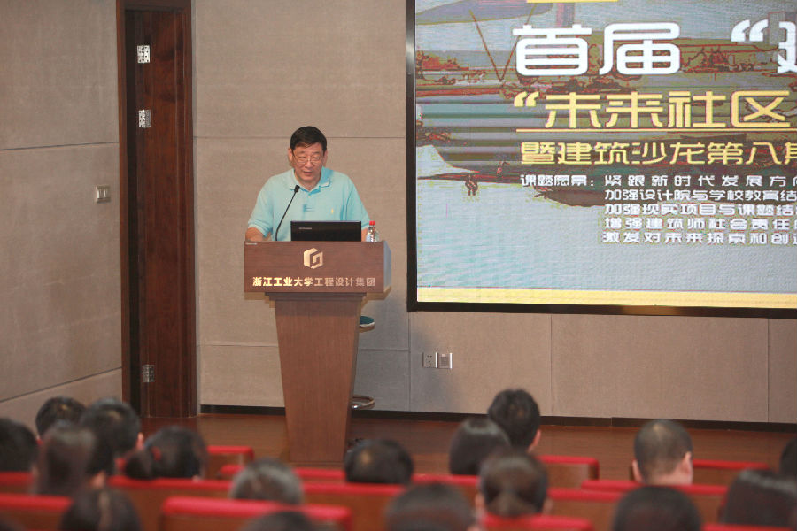 6月25日上午,由浙江工业大学建筑工程学院和浙江工业大学工程设计集团有限公司联合策划承办的首届“建筑设计工作营”开营仪式在学校工程设计集团有限公司三楼报告厅顺利举行。学校教务处副处长顾容、建筑工程学院院长陈前虎、学校工程设计集团有限公司董事长兼总裁单玉川、副总裁兼党总支书记陈呈频、总裁助理兼总建筑师季怡群、朗诗绿色集团朗诗寓产品蓝建伟总监、许晓苑总监以及集团公司副总、各分院院长、建筑系老师、参加工作营的建筑学专业学生共100余人共同出席了开营仪式。开营仪式由建筑系主任赵小龙和集团副总工程师兼建筑创新协同中心主任庄磊共同主持。