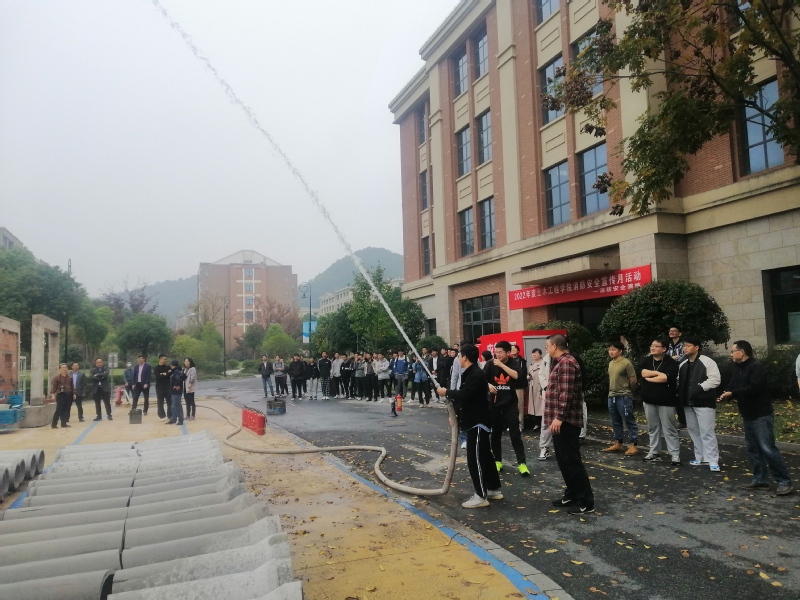 学校保卫处消防科相关负责人现场向师生讲解并演示了灭火器正确使用方法和步骤、消防水枪、消防水带的快速连接和使用要领。培训结束后,学院师生在专业人员的指导下进行了消防灭火演练。