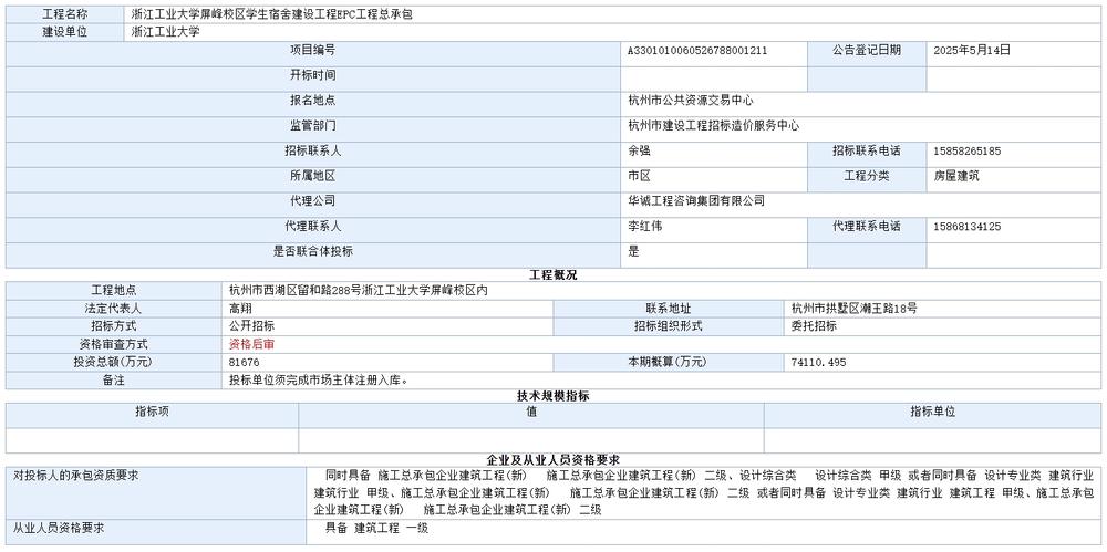 屏峰校区学生宿舍建设工程EPC工程总承包招标公告