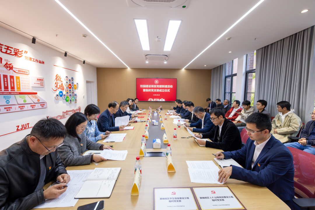校园建设处党支部以此为指导思想,将基层党建的创新实践落实到重大项目建设第一线,积极践行“支部建在项目上、党旗插在工地上、身份亮在岗位上”的工作理念,创立“任务驱动型”临时党支部:屏峰校区学生宿舍建设工程临时党支部和屏峰校区1-F 山坳地块建设工程临时党支部,让党组织与重大项目同生共长。